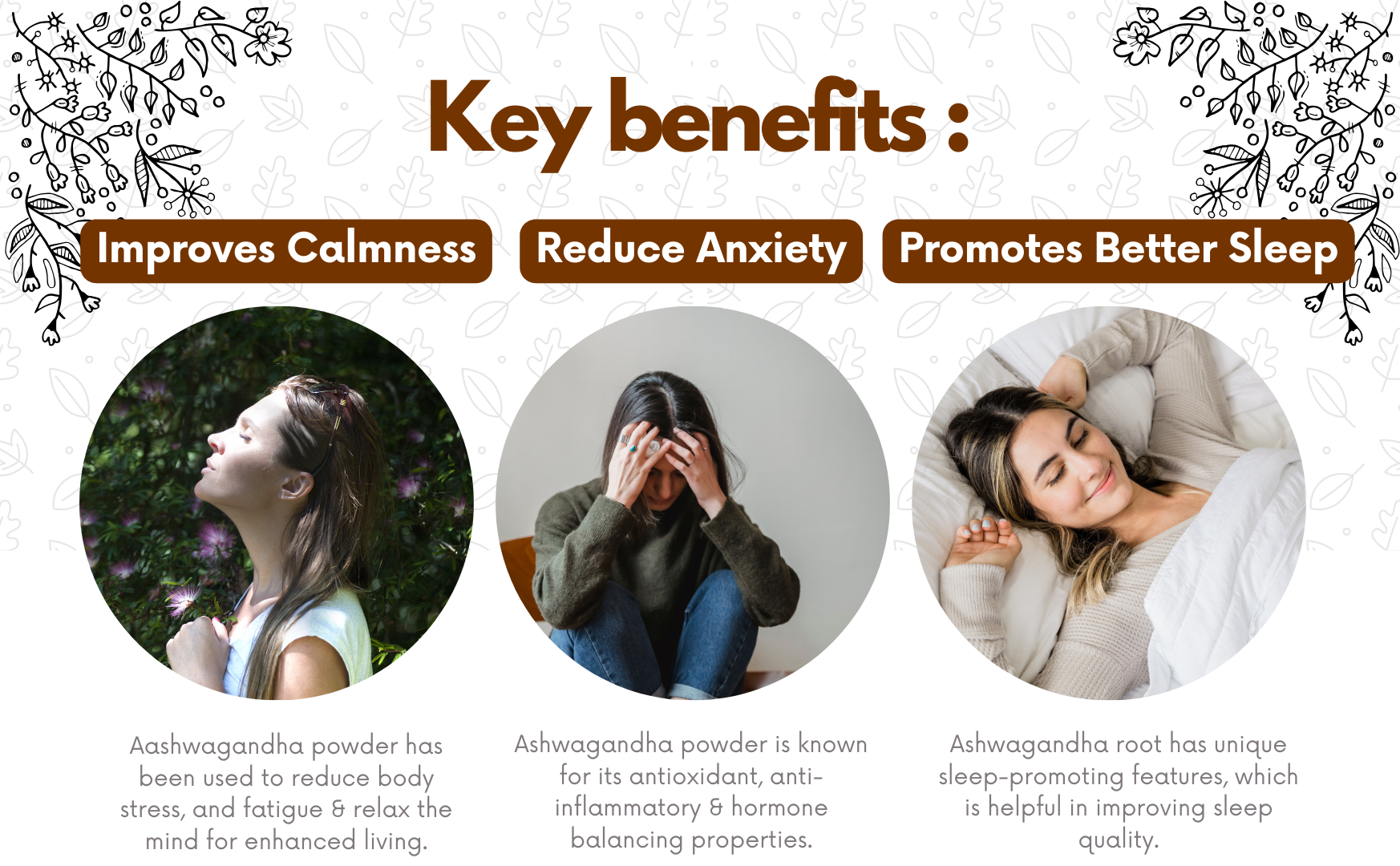 Aids Sleep: Ashwagandha can help calm your mind and promote a deeper, more restful sleep, leaving you feeling refreshed.
